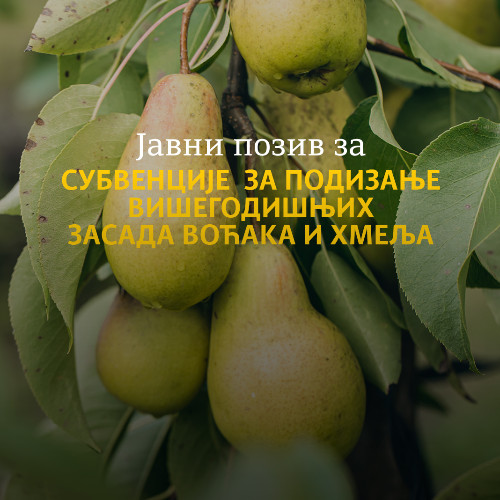 Јавни позив за субвенције у физичку имовину пољопривредног газдинства кроз подршку подизања вишегодишњих производних засада воћака и хмеља расписан је 17. јула и трајаће до 17. августа 2023. године, док ће подношење захтева за подстицаје за производне засаде јагода подигнуте у трећем кварталу 2023. године трајати до 15. септембра 2023. године.