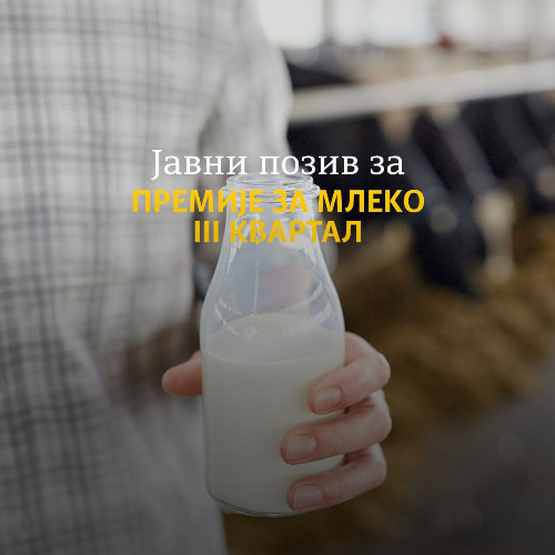 Јавни позив за за премију за млеко за 3. квартал, расписан је данас, 2. октобра, и трајаће до 2. новембра 2023. године.